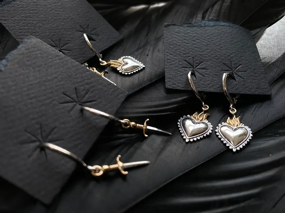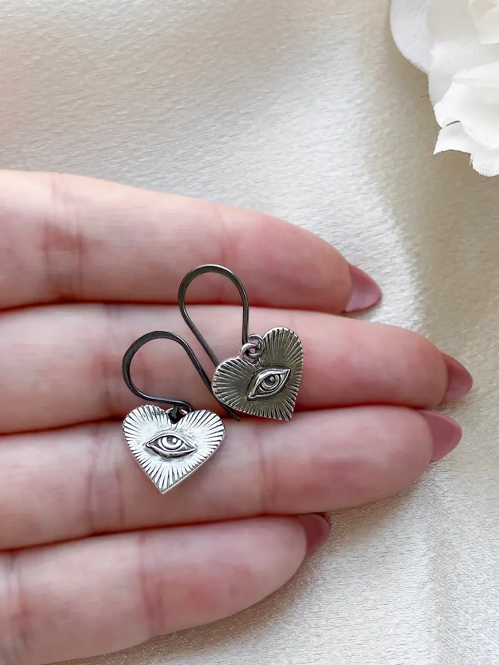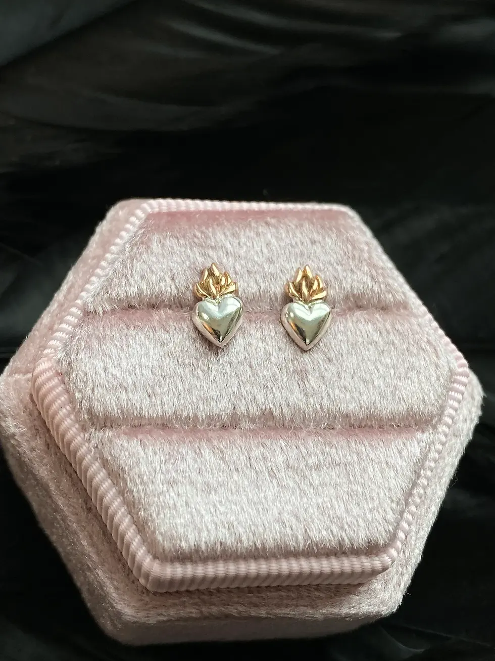 Teeny Tiny Sterling Silver Sacred Heart Stud Earrings